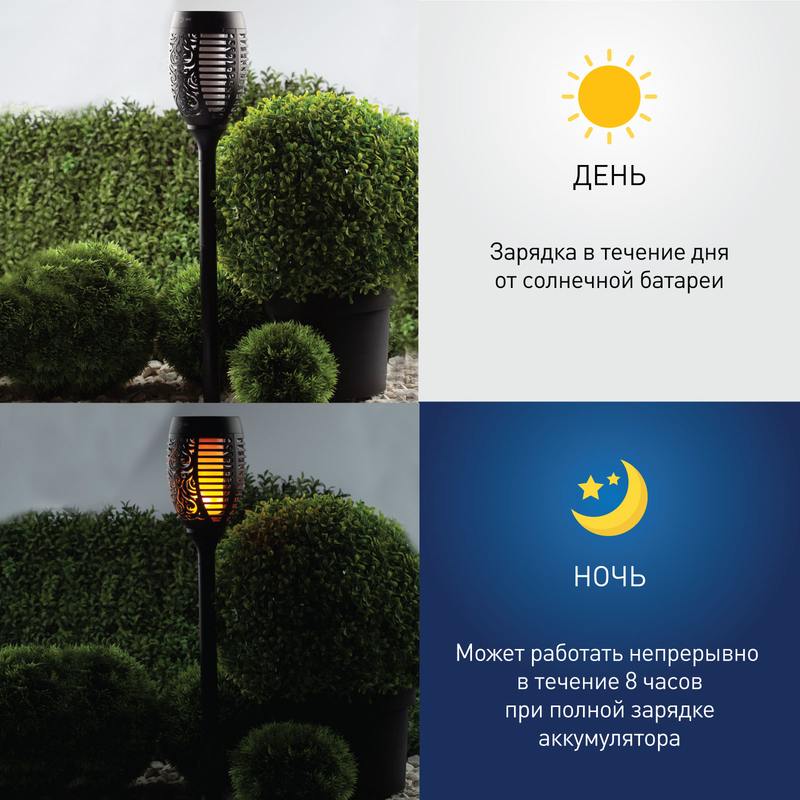 Характеристики ERASF012-35 ЭРА Садовый светильник Факел на солнечной батарее, 72 см: