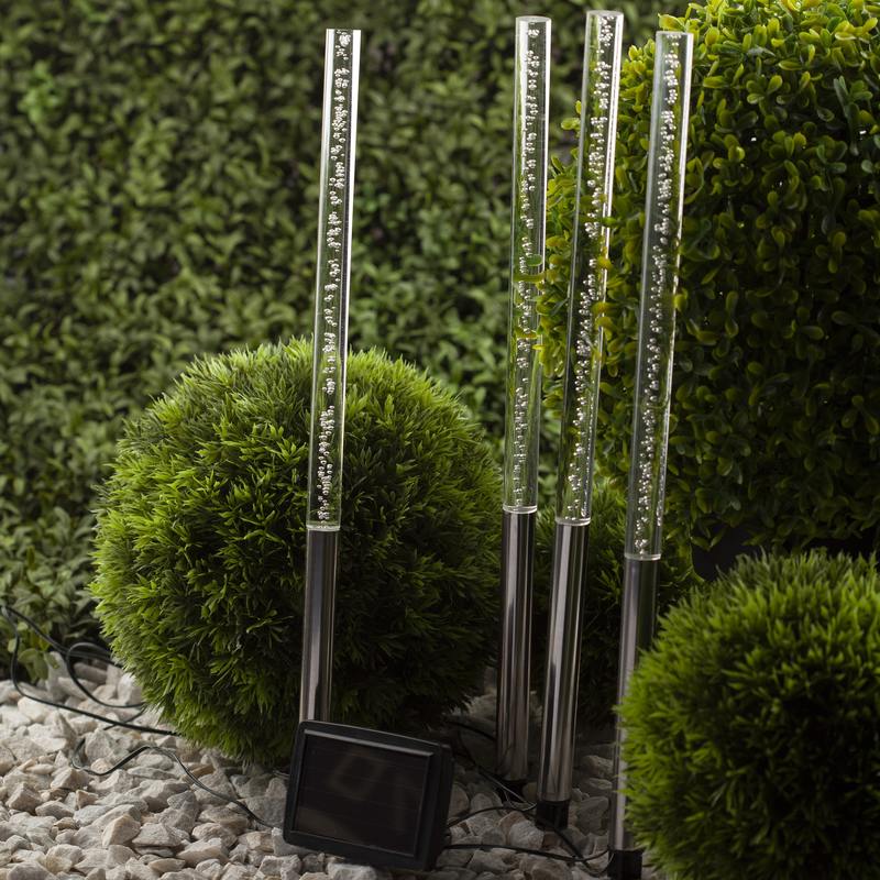 Садово-парковый светодиодный светильник ERASF024-22 "Пузырьки" станет необычным источником света для Вашего сада. В комплект входит 4 светильника, соединенных между собой. Оптимальная длина позволит Вам разместить конструкцию в палисаднике, украсить декоративный пруд или бассейн, необычно подсветить тропинку или придомовую территорию. Фигурки из ударопрочного пластика высотой 53 см с легкостью втыкаются в землю. Беспроводной LED светильник работает от солнечной батареи. Данный вид получения энергии является наиболее экологичным, энергоемким, а также бесшумным. Питание происходит во включенном режиме "ON", днем. Самое интересное начинается с наступлением темноты. Пузырьки начинают медленно переливаться желтым, зеленым, фиолетовым, розовым и оранжевым цветами. Такое световое шоу будет лучше всего смотреться в особо затемненных местах. Эффект пузырьков придает светильнику динамики, привлекает внимание. Работа от солнечной батареи рассчитана 8 часов непрерывной работы. Высокий показатель пыле и влагозащиты позволяет оставлять светильник на улице в непогоду. Обращаем Ваше внимание, что перед использованием фигурки её необходимо включить и зарядить. Светильник заряжается в течение всего светового дня. Уличный светодиодный светильник от бренда ЭРА лучший вариант для украшения Вашего сада.