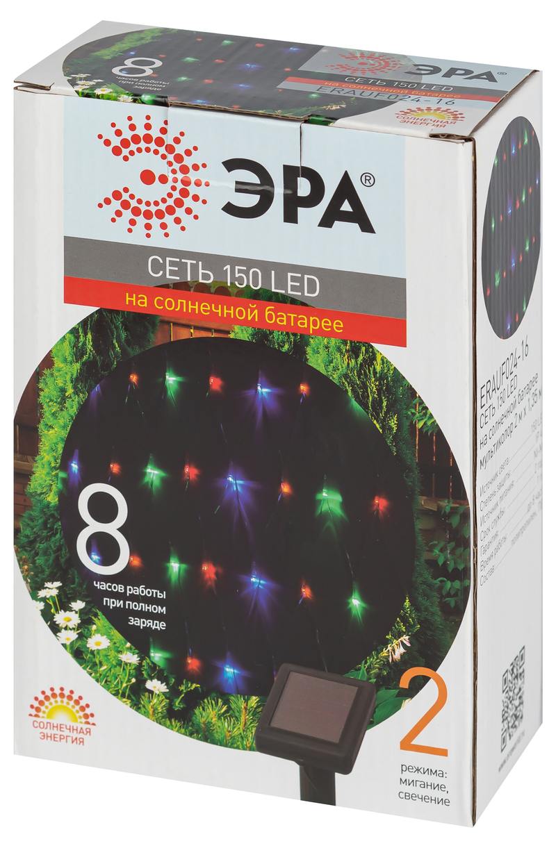 Характеристики ERAUF024-16 ЭРА Сеть 150 LED на солнечной батарее мультиколор 2м*1,35м: