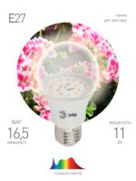Характеристики Фитолампа для растений светодиодная ЭРА FITO-11W-Ra90-E27 полного спектра 11 Вт Е27: