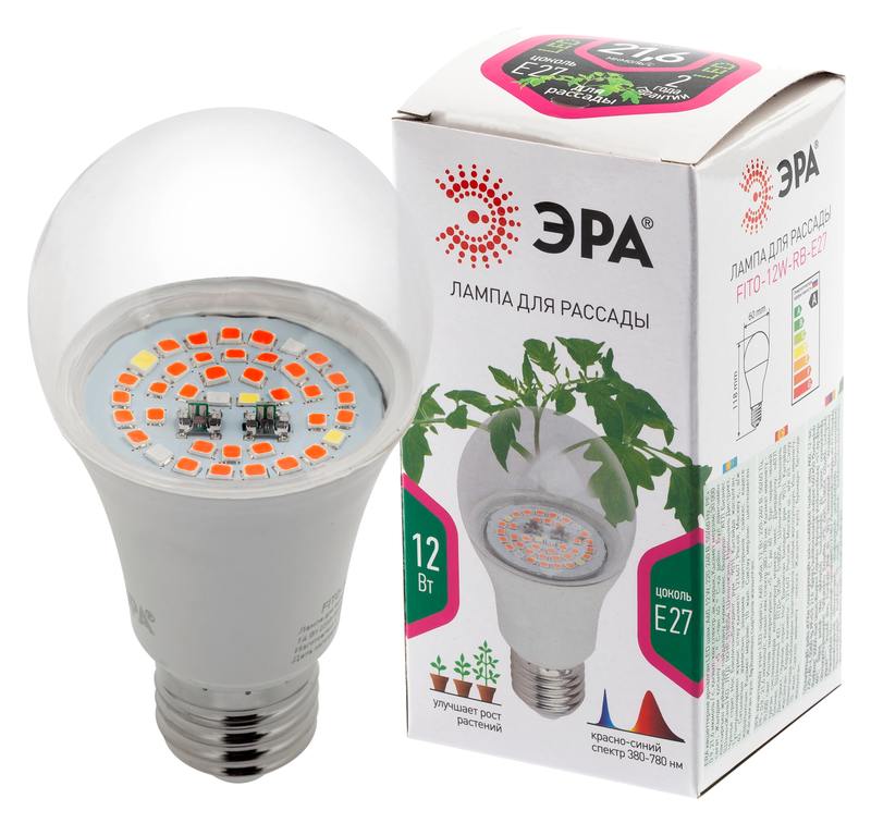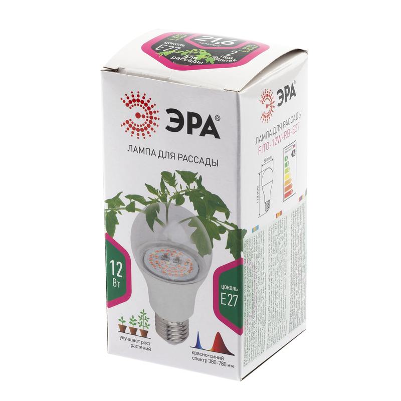 Лампа ЭРА FITO-12W-RB-E27 красно — синего спектра для выращивания рассады, досветки комнатных цветов станет Вашим не заменимым помошником. Данная лампа отлично подходит для зелени, пасленовых. Рекомендуемая высота расположения лампы над листьями от 5 до 25 см. Соотношение синего к красному как 1 к 3 дает возможность растениям марш бросок на набор питательных веществ и рост листьев. Так как масса выращиваемых растений прямо пропорциональна затраченной мощности, необходимо понимать что усиление эффекта от лампы возможно при увеличении светового потока. Для избежания ожега листьев мощность не должна превышать 450 Вт на м2. при высоте подвеса 4 местра. Прозрачный поликарбонатный рассеиватель сохраняет выходящюю энергию, в отличие от ламп с молочным рассеивателем. Новый рейстайлинг лампы ЭРА FITO-10W-RB-E27-K лампа ЭРА FITO-10W-RB-E27 отличился более хорошей светоотдачей, связанной более хорошей подобранной биновкой светодиодов, более низким током через кристалл, что позполило снизить температуру на светодиоде на 5 градусов и соответственно увеличить их срок жизни. Разгруженным драйвером, что позволило уменьшить температуру на управляющей микросхеме на 10 градусов, что так же увеличит ресурс ее работы. Спектрограмма и суммарная мощность лампы не изменилась.