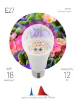Характеристики Фитолампа для растений светодиодная ЭРА FITO-12W-RB-E27 красно-синего спектра 12 Вт Е27: