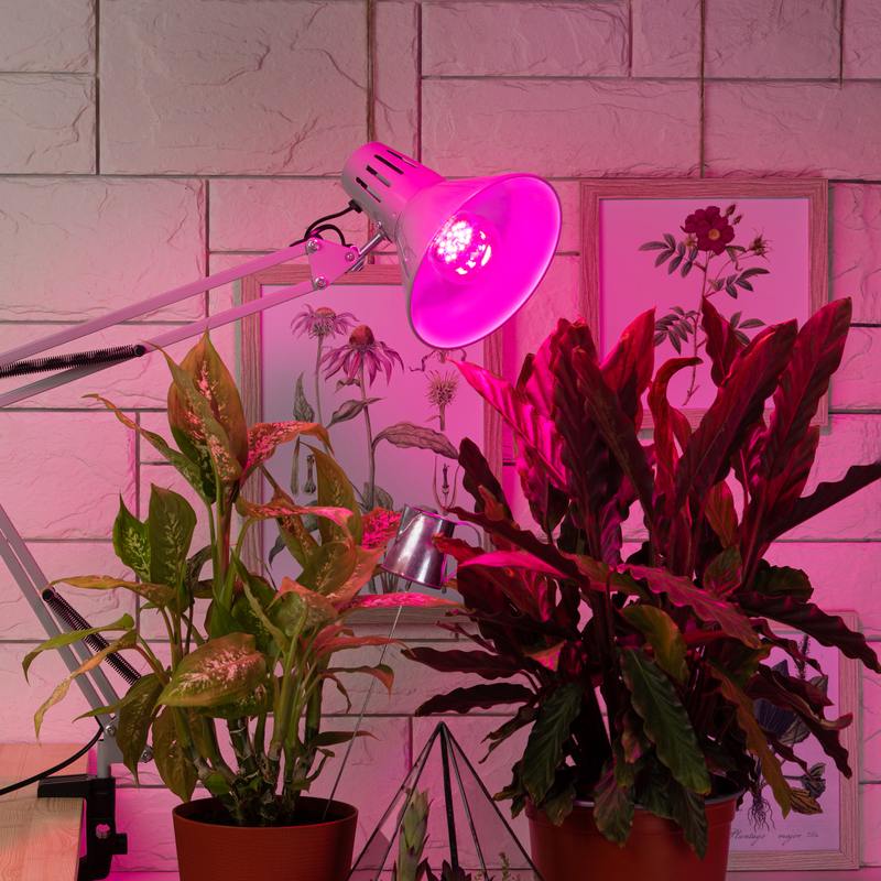 Розовая лампа подойдет как для взрослых растений, так и для рассады. Идеальна для выращивания помидоров, баклажанов, перцев. Возможна эксплуатация даже при отсутствии естественных источников излучения для этих культур.