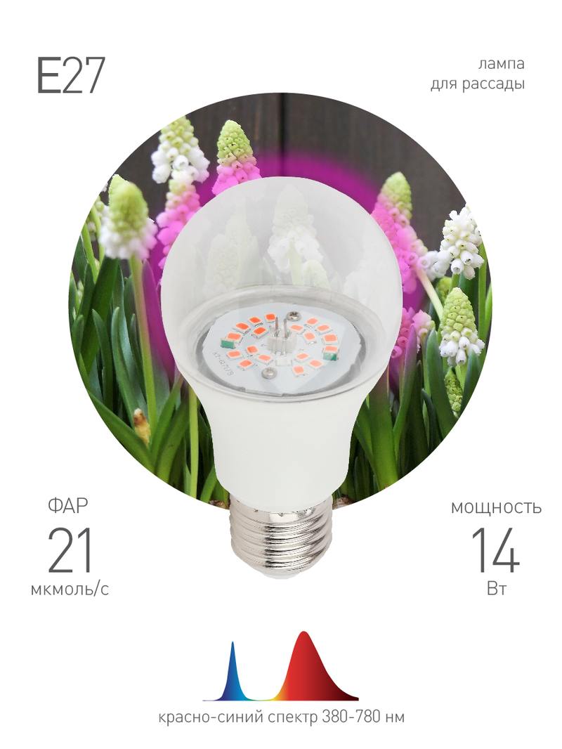 Характеристики Фитолампа для растений светодиодная ЭРА FITO-14W-RB-E27-K красно-синего спектра 14 Вт Е27: