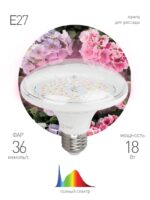 Характеристики Фитолампа для растений светодиодная ЭРА FITO-18W-Ra90-E27 полного спектра 18 Вт Е27: