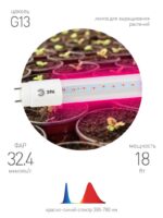 Фитолампа с цоколем G13 ЭРА FITO-18W-RB-Т8-G13-NL станет отличным выбором для выгонки зелени, а также выращивания листового салата, рассады помидоров и других видов пасленовых. Кроме того, с помощью этого светильника Вы также сможете разводить и некоторые виды декоративных растений. Красно-синий спектр ускорит рост и увеличит темпы фотосинтеза, а простой дизайн позволит модели легко вписаться в интерьер балкона или кухни. Основное достоинство такой фитолампы легкий монтаж, возможность моделирования спектра в течение жизни растения и равномерное распределение освещения.