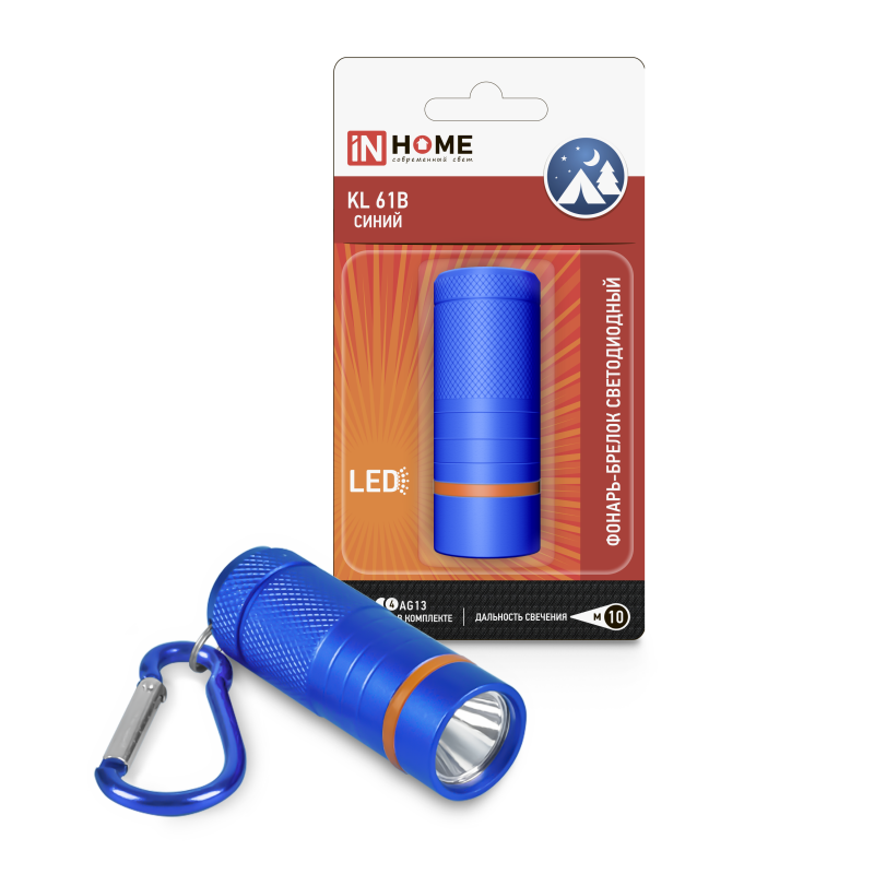 Характеристики Фонарь-брелок KL 61B LED батарейки в комплекте алюминиевый СИНИЙ IN HOME:
