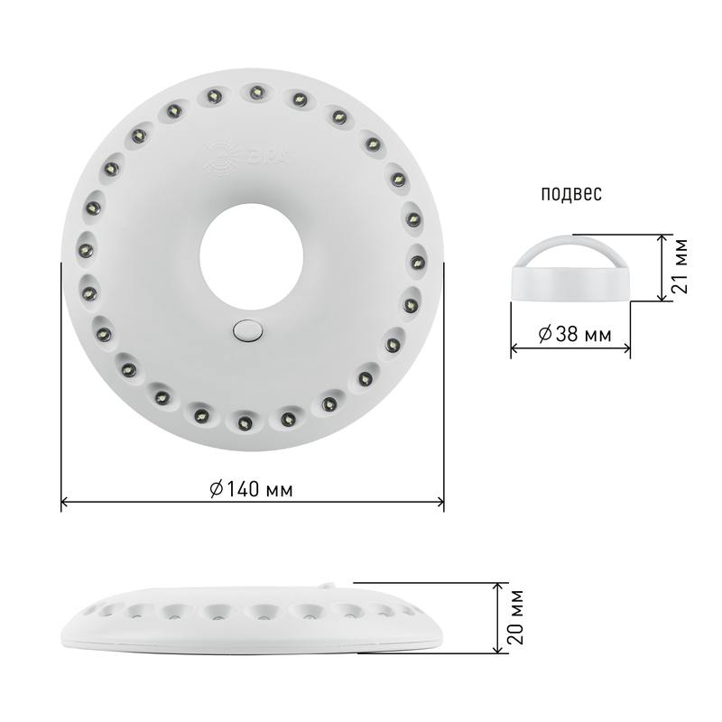 Характеристики Фонарь кемпинговый светодиодный ЭРА KB-501 НЛО на батарейках с магнитом и карабином походный яркий светильник: