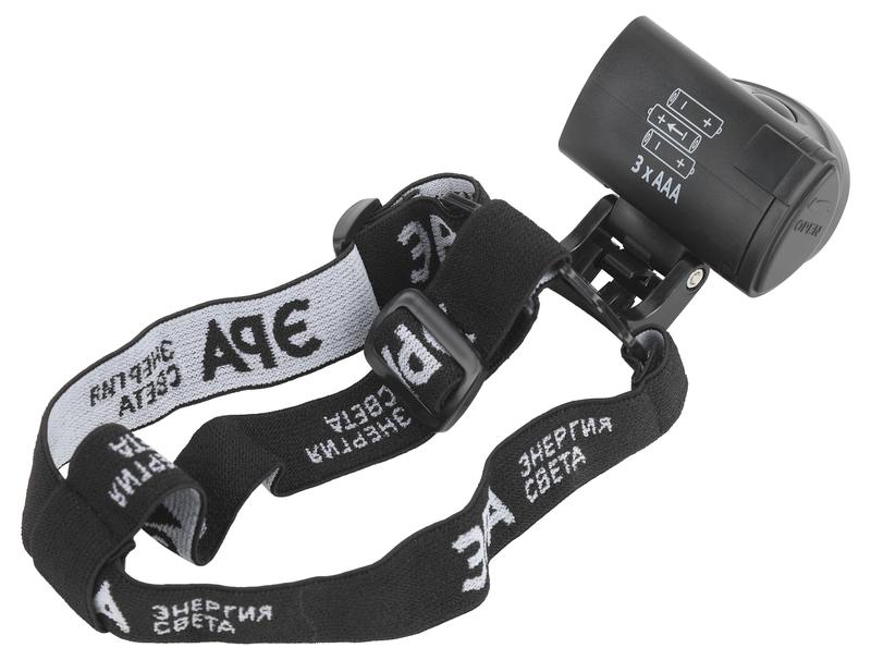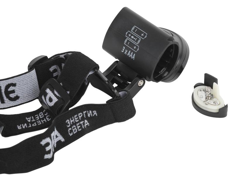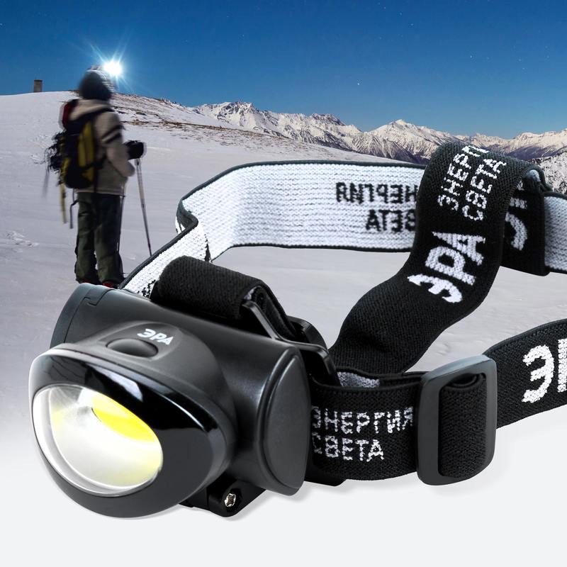 ЭРА GB-601 — светодиодный налобный фонарь с тремя режимами работы и адаптивным углом наклона. Работает от 3 мизинчиковых батареек (3 х ААА), одного комплекта элементов питания хватает на 8 часов непрерывного использования.
