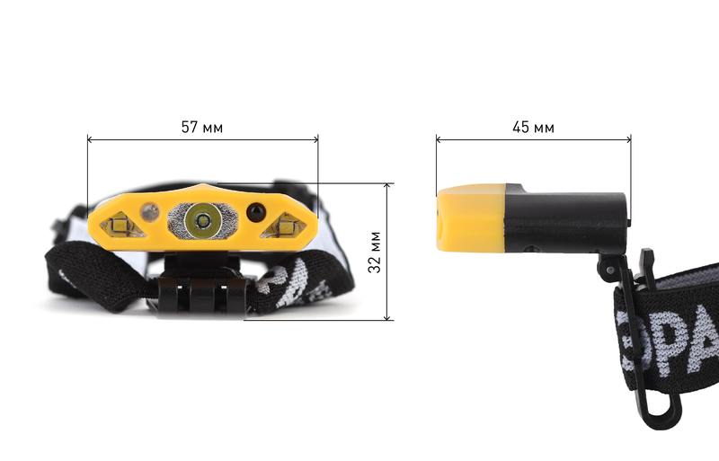 Характеристики Фонарь налобный светодиодный ЭРА Рабочие GA-804 аккумуляторный яркий 4 режима желто-черный: