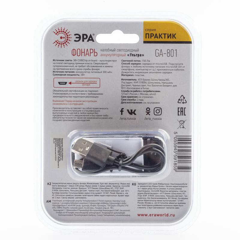 Фонарь налобный с аккумулятором для охоты и рыбалки яркий мощный Эра GA-801 "УЛЬТРА" серии "Практик" идеально подходит для бытовых и практических задач. Фонарик налобный для рыбалки туристический бытовой удобно использовать для работы в доме, в саду или в любой ситуации, когда необходим дополнительный источник света и свободные руки. Фонарь питается от аккумулятора на 300 мАч. Полной зарядки хватает на 6 часов непрерывной работы, а заряжается аккумулятор от USB. Фонарик может работать в 4 режимах, а также светить белым и красным светом. В фонаре используется мощный светодиод на 3Вт премиум класса. Он ярче и мощнее обычных диодов, светит ровным светом. Дальность света 14 метров. Также фонарь имеет широкий угол светового потока и оборудован клипсой, которая позволяет прикрепить его на одежду, к рюкзаку или на кепку. Шарнир позволяет вращать фонарь на 720 градусов.