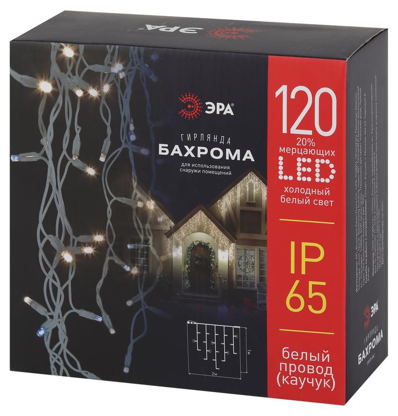 Характеристики Гирлянда ЭРА ERAPS-BK2 светодиодная новогодняя бахрома 2×1 м холодный белый свет 120 LED: