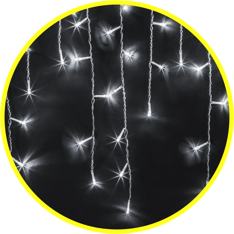 Гирлянда «бахрома» 2 х 0,5 метра Размер: 2 х 0,5 м (Общая длина с проводом 3.5 метра) Количество светодиодов: 100 шт. Расстояние между светодиодами: 8 см Соединение в линию: до 5 гирлянд Тип провода: морозостойкий, прозрачный ПВХ