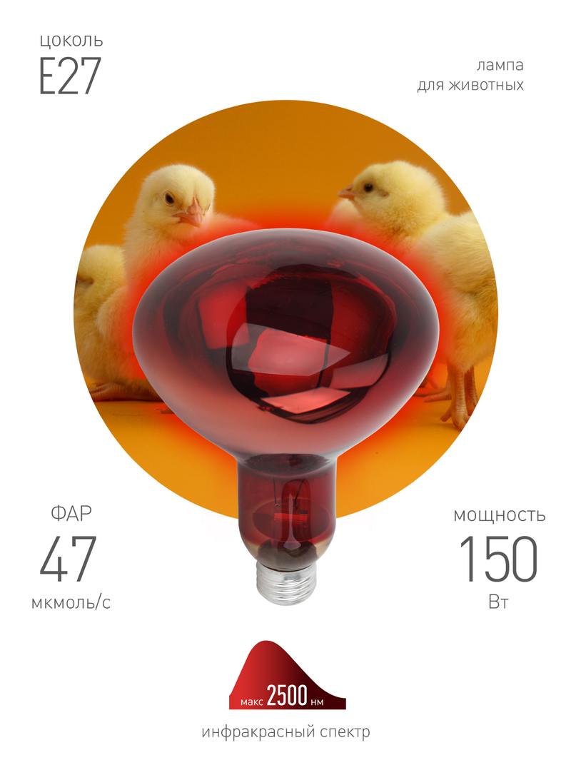 Характеристики Инфракрасная лампа ЭРА ИКЗК 230-150 R127 кратность 1 шт Е27 / E27 для обогрева животных и освещения 150 Вт: