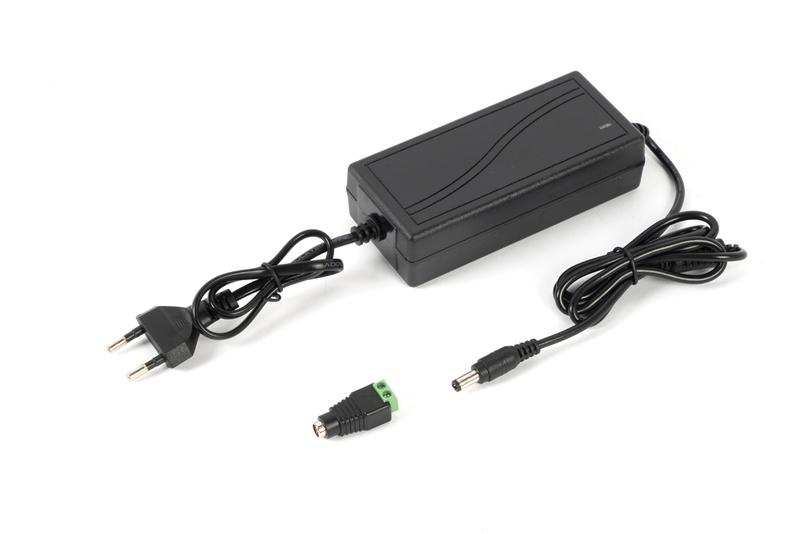 12В, 3А. Напряжение питающей сети 110-245 В переменного тока. Защита выхода от КЗ. Пластиковый корпус IP20. Подключение питания — сетевая вилка, подключение нагрузки — штекер 5,5х2,1 мм, переходник на клеммы в комплекте. Габаритные размеры — 50х30х110 мм.