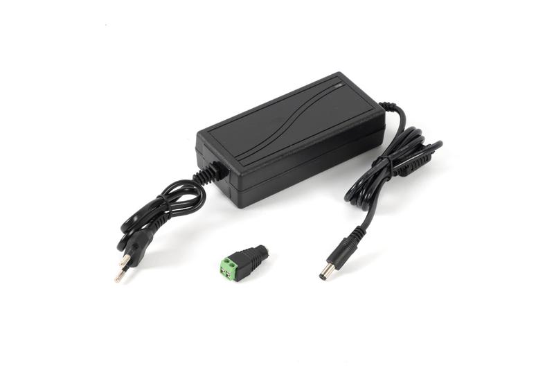 12В, 5А. Напряжение питающей сети 110-245 В переменного тока. Защита выхода от КЗ. Пластиковый корпус IP20. Подключение питания — сетевая вилка, подключение нагрузки — штекер 5,5х2,1 мм, переходник на клеммы в комплекте. Габаритные размеры — 50х30х110 мм.
