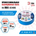Характеристики Изолента ЭРА PRO PRO150BLUE ПВХ профессиональная 19мм х 20м 150 мкм, синяя: