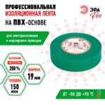 Характеристики Изолента ЭРА PRO PRO150GREEN ПВХ профессиональная 19мм х 20м 150 мкм, зеленая: