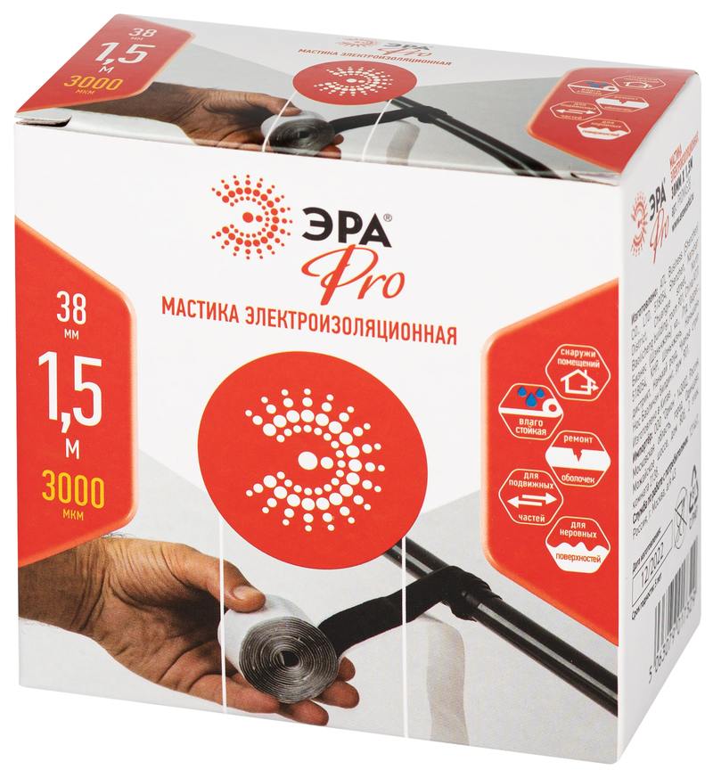 Характеристики Изолента ЭРА PRO PROMAS38 Мастика электроизоляционная, 38мм х 1,5м, 3мм черная: