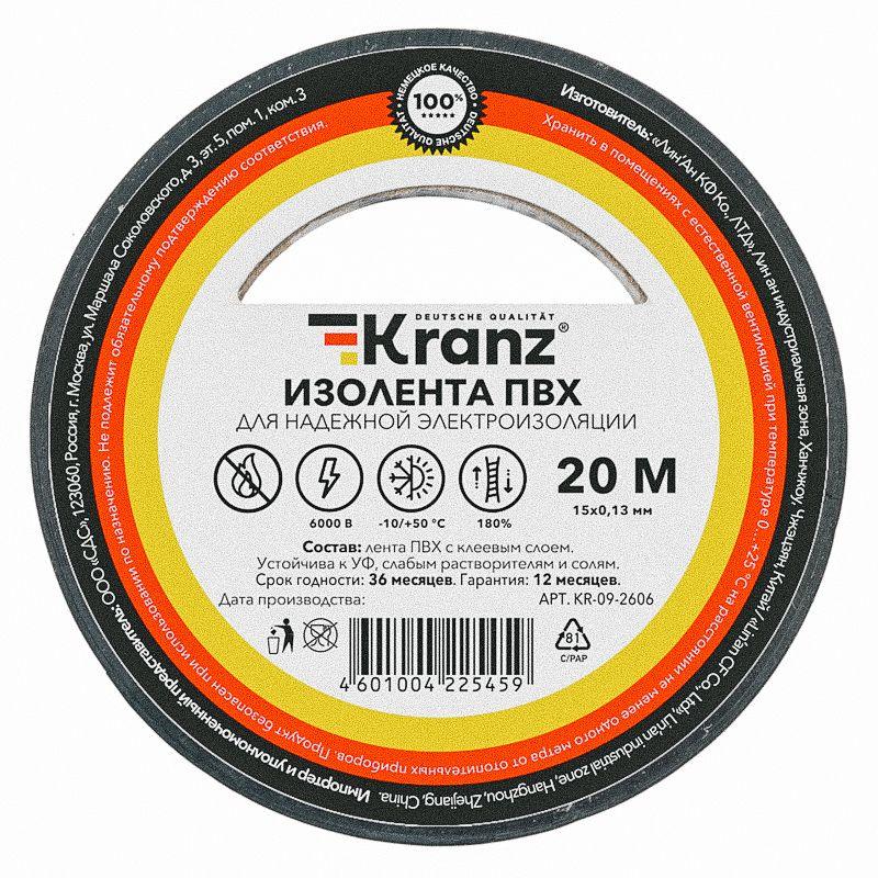 Характеристики Изолента ПВХ 0.13х15мм 20м черн. Kranz KR-09-2606: