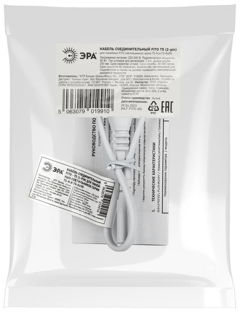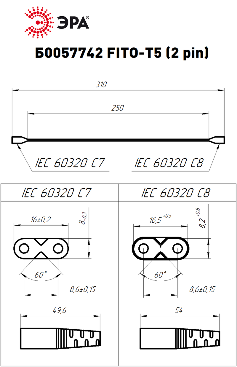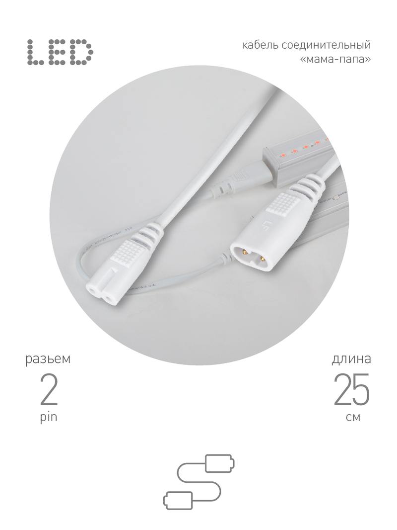 Характеристики Кабель соединительный для фитолампы ЭРА FITO-Т5 (2-pin) 0.25 м коннекторы IEC C7- IEC C8: