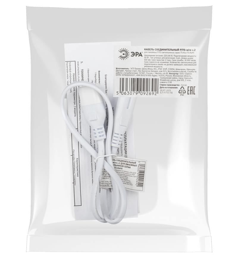 ЭРА FITO-wire v.2 — соединительный провод для подключения нескольких светильников в единую цепь. Подходит для серий линейных фитосветильников ЭРА FITO Т5-N и ЭРА Т5-Ra90. Длина — 50 см. Двужильный кабель ПВС 2х05 мм2. Двойной штекер С7 на двойной разъем С8.