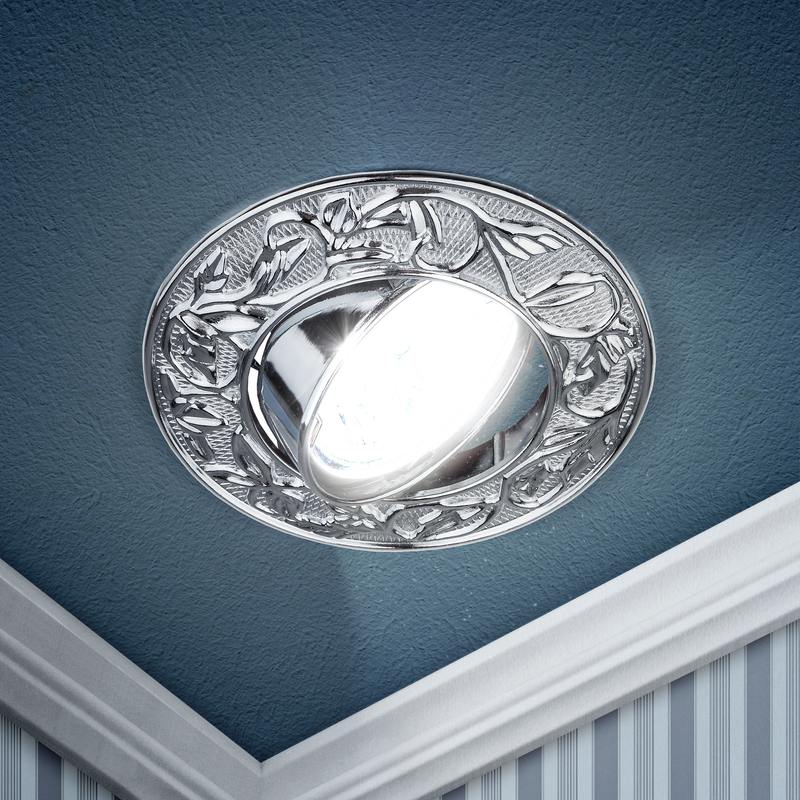 Характеристики KL11A CH Светильник ЭРА литой пов. лианы MR16,12V/220V, 50W хром: