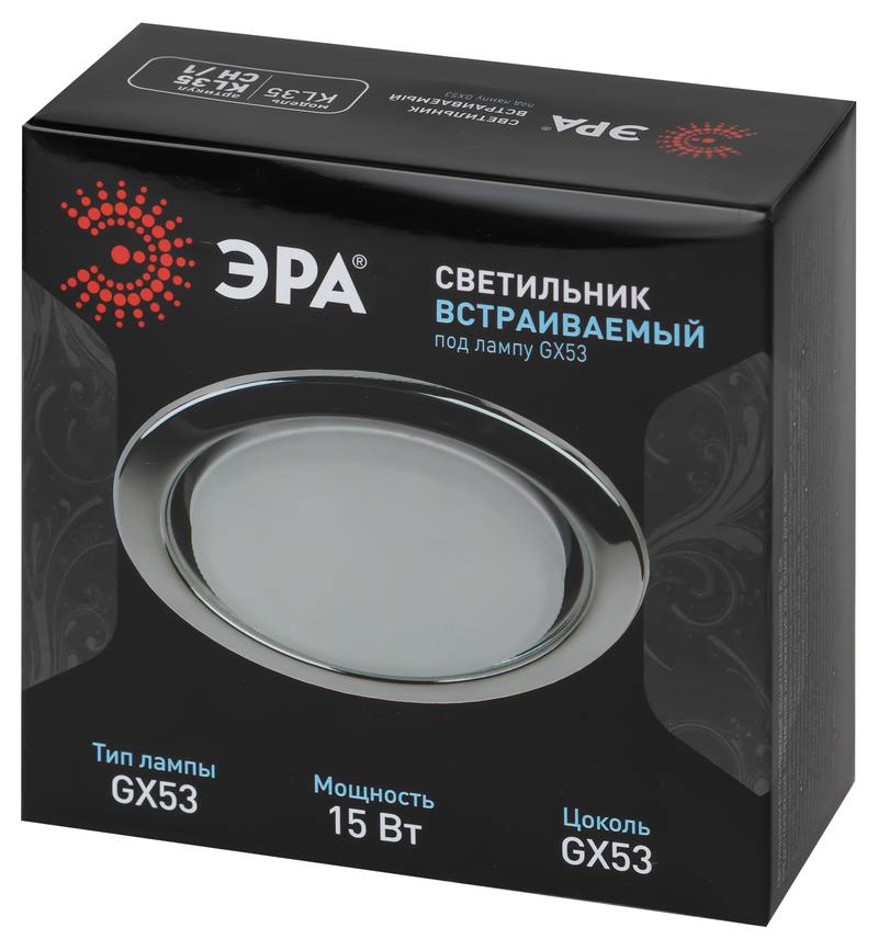 Характеристики KL35 CН /1 (к) Светильник ЭРА под лампу Gx53,220V, 13W,хром: