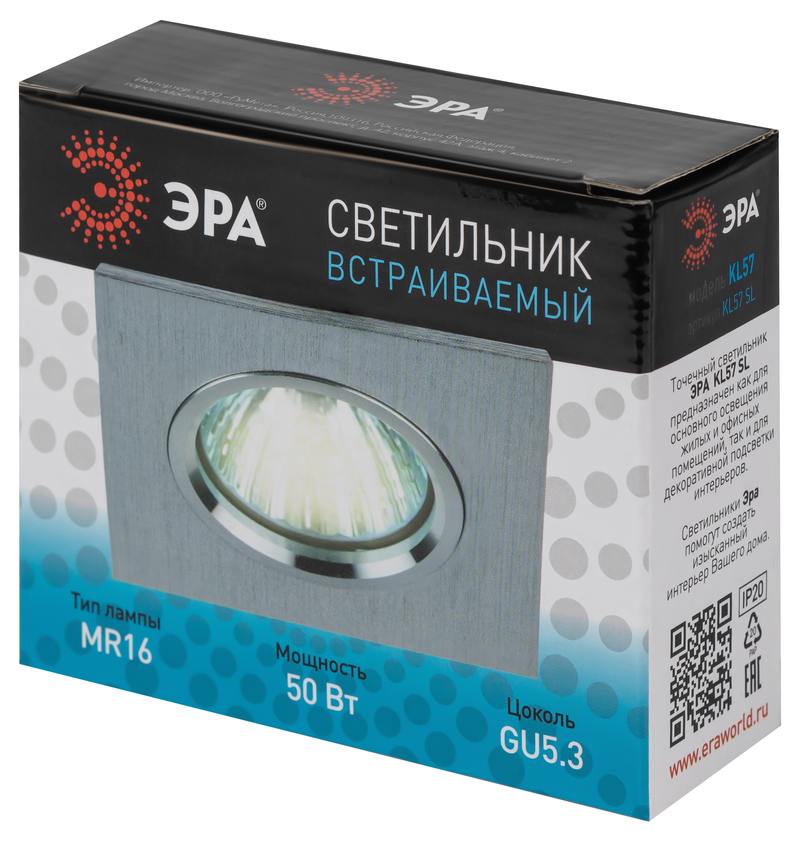 Характеристики KL57 SL Светильник ЭРА литой алюминевый MR16,12V/220V, 50W серебро: