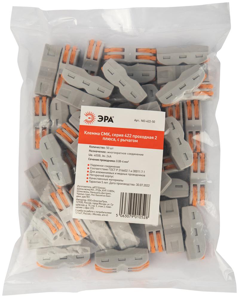 Характеристики Клемма ЭРА серия 422 проходная 2 плюса с рычагом 0.08-4мм2 упаковка 50 шт: