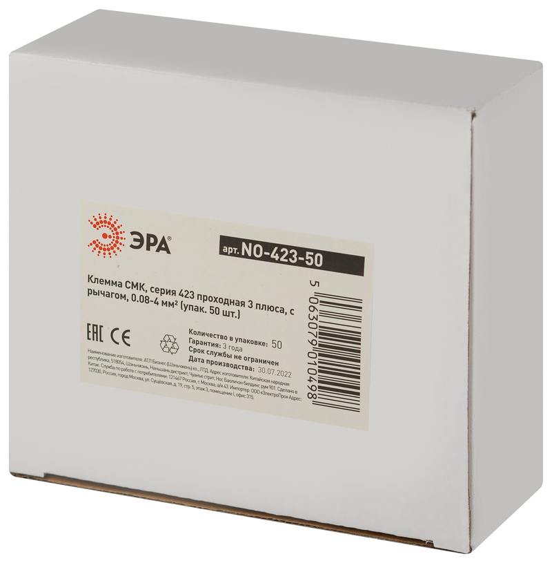 Характеристики Клемма ЭРА серия 423 проходная 3 плюса с рычагом 0.08-4мм2 упаковка 50 шт: