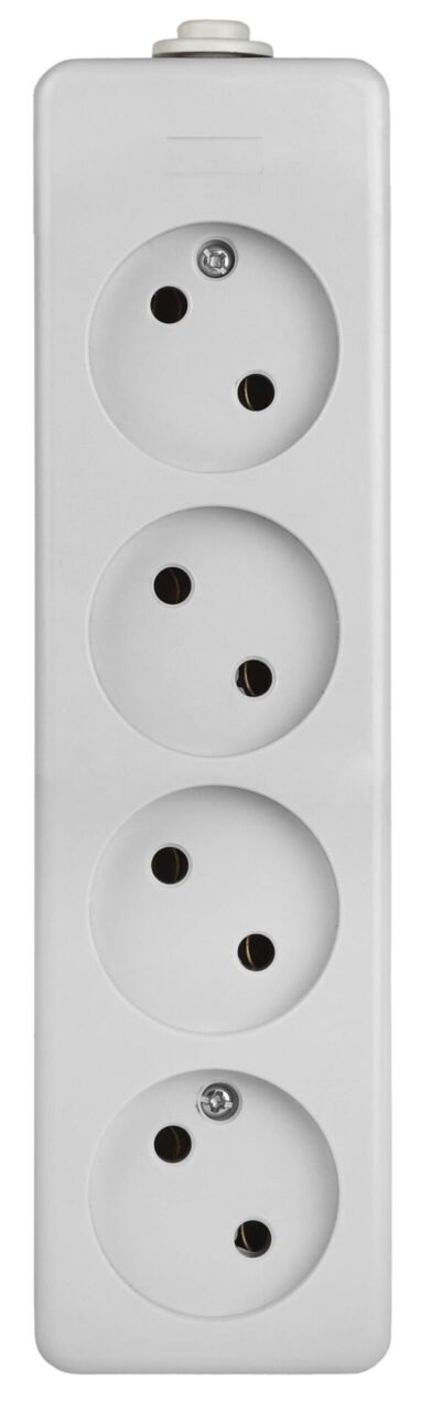 Колодка ЭРА K-4 . На 4 розетки без зазeмления. Максимальная мощность 10 А/2200. Для кабеля сечением до 2×1мм2.