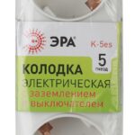 Колодка электрическая Эра K-5es с заземлением, с выключателем, 5 розеток. Корпус выполнен из ударопрочного и негорючего пластика. Рассчитана на максимальную мощность 16А / 3500 Вт и для подключения кабеля сечением до 1,5мм2. Электрическая колодка подойдет для тех, кто хочет сделать удлинитель самостоятельно. Также может использоваться как накладные розеточные блоке в подсобных помещениях.