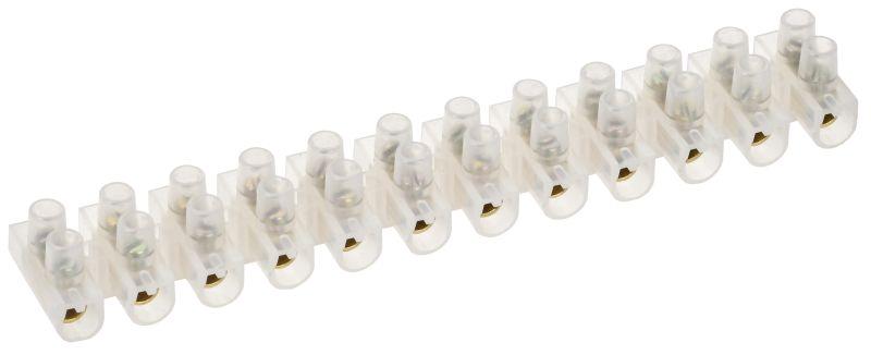 Применяются для винтового соединения проводников, защищая провод от повреждения и исключая возможность замыкания на корпус электроустановки. Изоляционный каркас изготовлен из белого негорючего полистирола или прозрачного полиэтилена, клемма и винты — латунь.