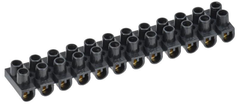 Применяются для винтового соединения проводников, защищая провод от повреждения и исключая возможность замыкания на корпус электроустановки. Изоляционный каркас изготовлен из белого негорючего полистирола или прозрачного полиэтилена, клемма и винты — латунь.