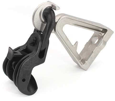 • ПРИНЦИП ДЕЙСТВИЯ После раскатки и СИП на требуемой высоте на промежуточных опорах раскаточные ролики заменяются на промежуточные зажимы. Нейтральный провод фиксируется в зажиме для предотвращения повреждения изоляции.