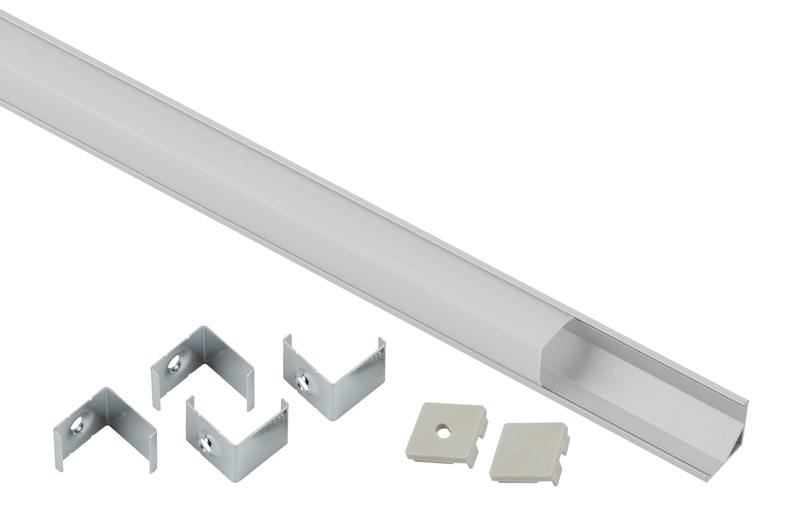 Комплект предназначен для установки светодиодных лент. За счёт отведения тепла работающих светодиодов увеличивает срок службы ленты. Анодированное покрытие обеспечивает устоичивость к воздействиям окружающей среды, обеспечивает гладкость и легко окрашивается. Эстетично смотрится в интерьере, обеспечивает механическую защиту. В комплекте угловой алюминиевый профиль CAB280 16х16мм, 2м и квадратным экраном 2м, 4 пластиковых крепления и 2 заглушки.