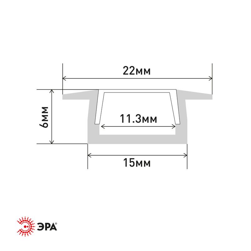 Характеристики Комплект с врезным анодированным профилем ЭРА 2206 с фланцем 21х6мм 2м CAB251: