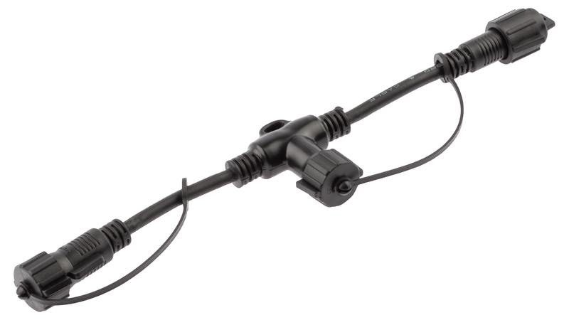 Профессиональный T-образный коннектор ЭРА ERAPS-C для подключения уличных гирлянд при создании масштабной новогодней иллюминации, актуальной для декорирования загородных домов, коттеджей, фасадов зданий, муниципальных объектов, торговых центров, скверов, парков, улиц, уличных веранд кафе и ресторанов, зимних городков, новогодних ярмарок и площадей. Т-образный коннектор для создания профессиональных новогодних инсталляций изготовлен из прочного морозостойкого каучука. Совместим с профессиональными гирляндами IP65 большинства производителей. Обеспечивает высокую защиту соединений от влаги и пыли. Дает возможность создавать длинные световые цепи и могут применяться в экстремальных погодных условиях, таких как ветер или сильные осадки.