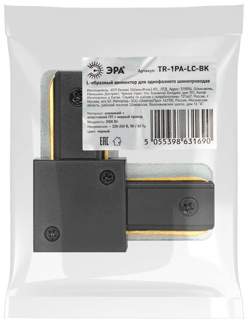 Характеристики Коннектор ЭРА TR-1PA-LС-BK L-образный для однофазного шинопровода черный: