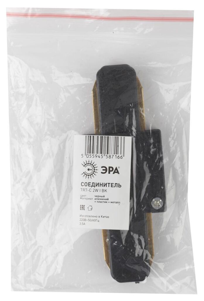 Характеристики Коннектор ЭРА TR7-C 2W I BK для однофазного шинопровода черный: