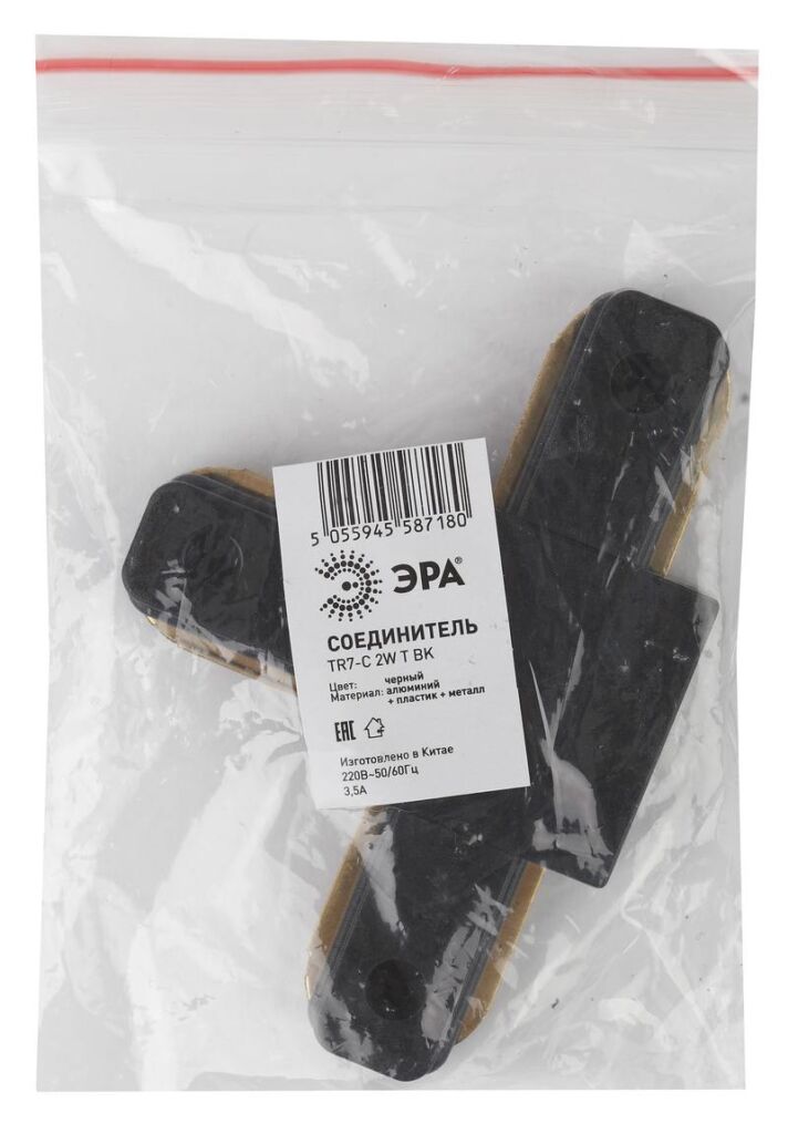 Характеристики Коннектор ЭРА TR7-C 2W T BK для однофазного шинопровода Т-образный черный: