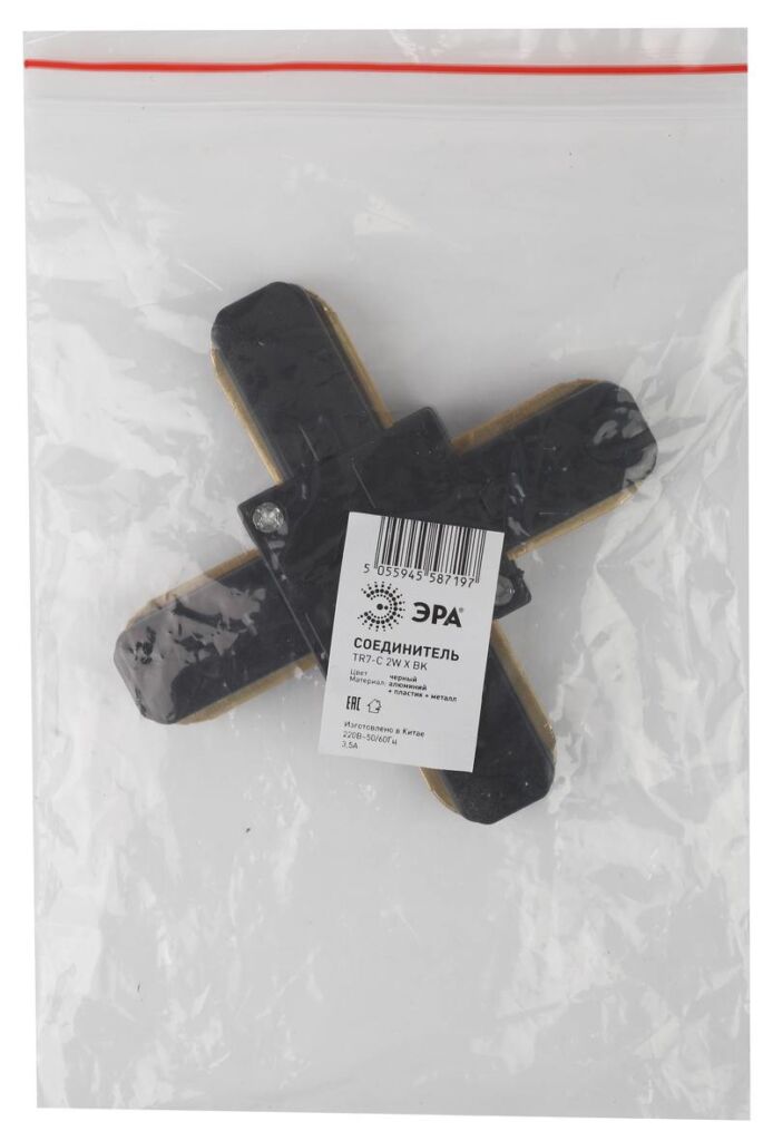 Характеристики Коннектор ЭРА TR7-C 2W X BK для однофазного шинопровода Х-образный черный: