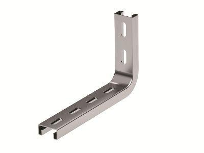 Монтажные элементы серии «B5 Combitech» совместимы с металлическими лотками и аксессуарами ДКС любой серии, а также с шинопроводами (как осветительными, так и магистральными). Элементы системы легко комбинируются друг с другом, что позволяет создавать конструкции любой сложности и строить даже проекты нестандартных размеров. При этом применяются соединения болтового типа — для крепления элементов не требуется использование сварки. Изделия могут выпускаться в различных исполнениях. Стандартное исполнение — «Сталь, оцинкованная по методу Сендзимира». Легкая потолочная консоль предназначена для организации кабельных трасс с небольшой нагрузкой. Она применяется для крепления к стене. Аксессуар изготавливается из стали толщиной 2,5 мм, он совместим с лотками шириной 400 мм и расчитан на нагрузку до 95 кг.
