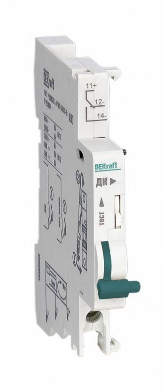 Контакт дополнительный ДК-105 для автоматических выключателей серии ВА-105 и ВА-105 DC DEKraft; предназначен для сигнализации состояния выключателя ВКЛ/ОТКЛ; тип контакта переключающий; ширина 9 мм; присоединение к выключателю слева.