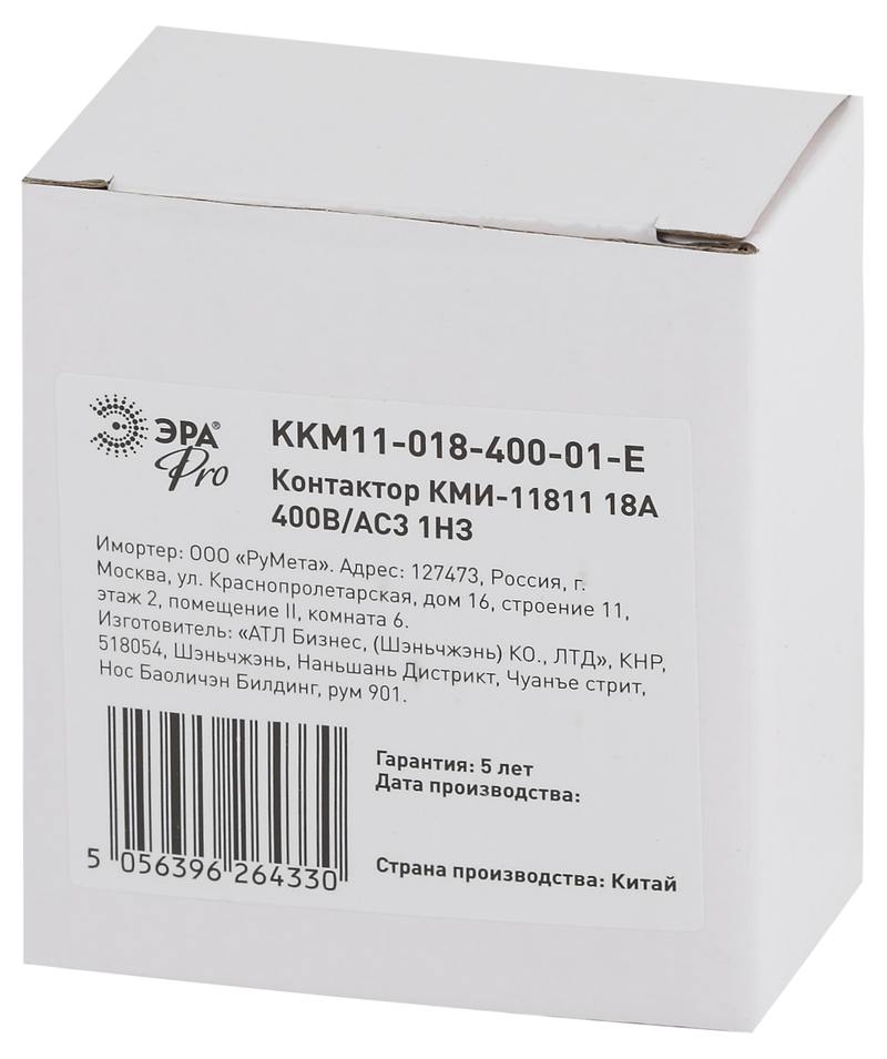 Характеристики Контактор ЭРА PRO KKM11-018-400-01-E КМИ-11811 18А 400В/АС3 1НЗ: