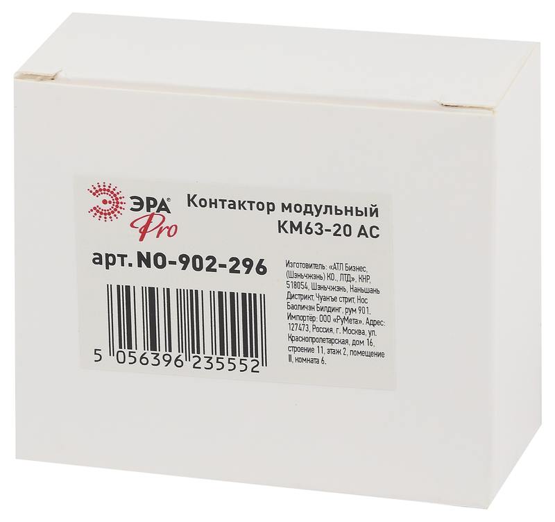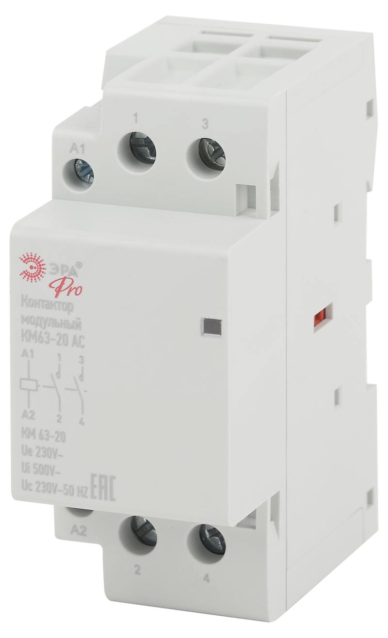 Характеристики Контактор модульный ЭРА PRO NO-902-296 КМ63-20 AC: