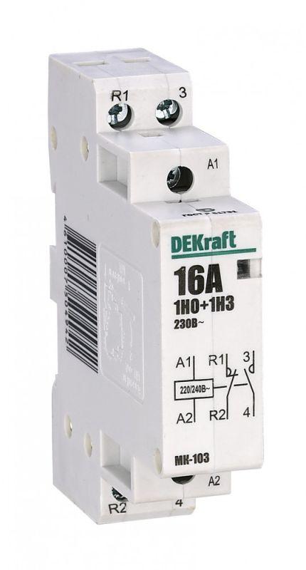 Характеристики Контактор модульный МК-103 1НО+1НЗ 16А 230В DEKraft 18051DEK: