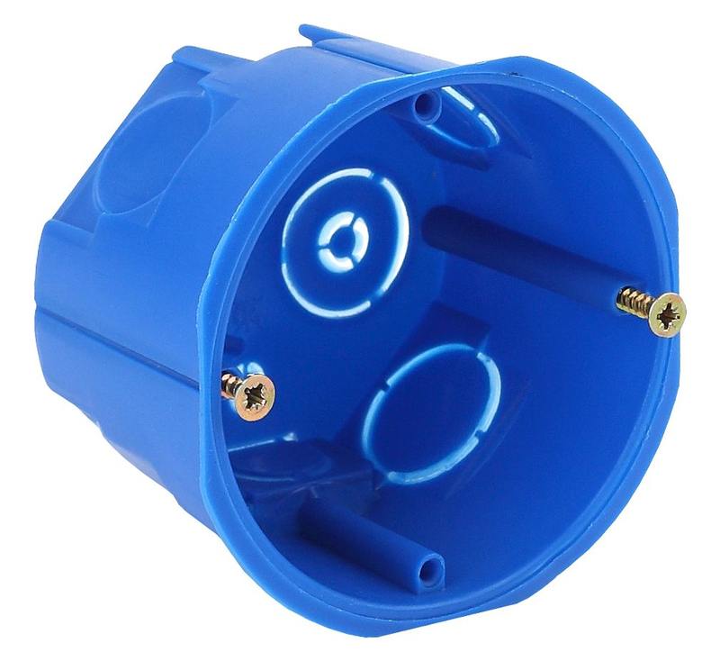 Характеристики Коробка установочная ЭРА KUT-68-45-blue синяя 68х45мм для твердых стен саморезы IP20: