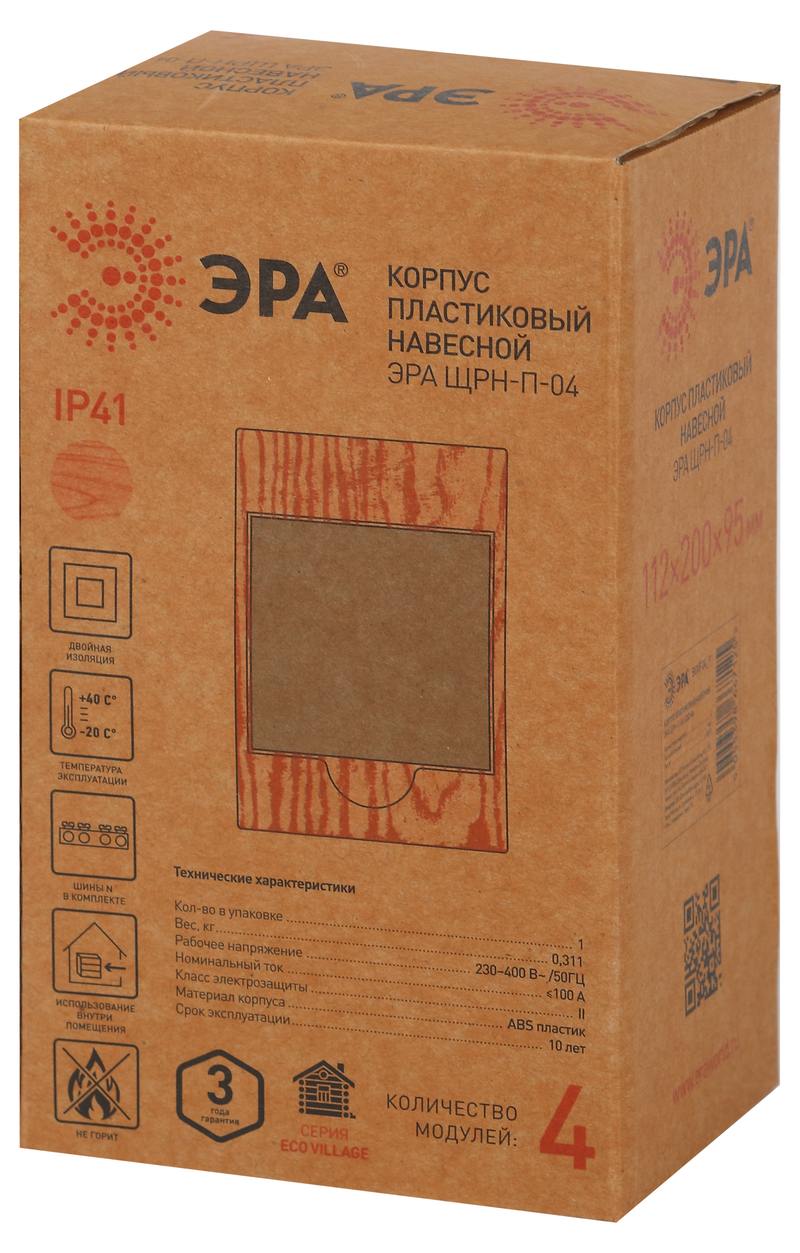 Характеристики Корпус пластиковый ЩРН-П-04 ЭРА BOXF 04_P IP41, сосна: